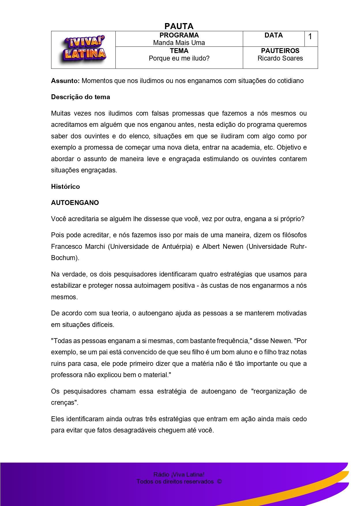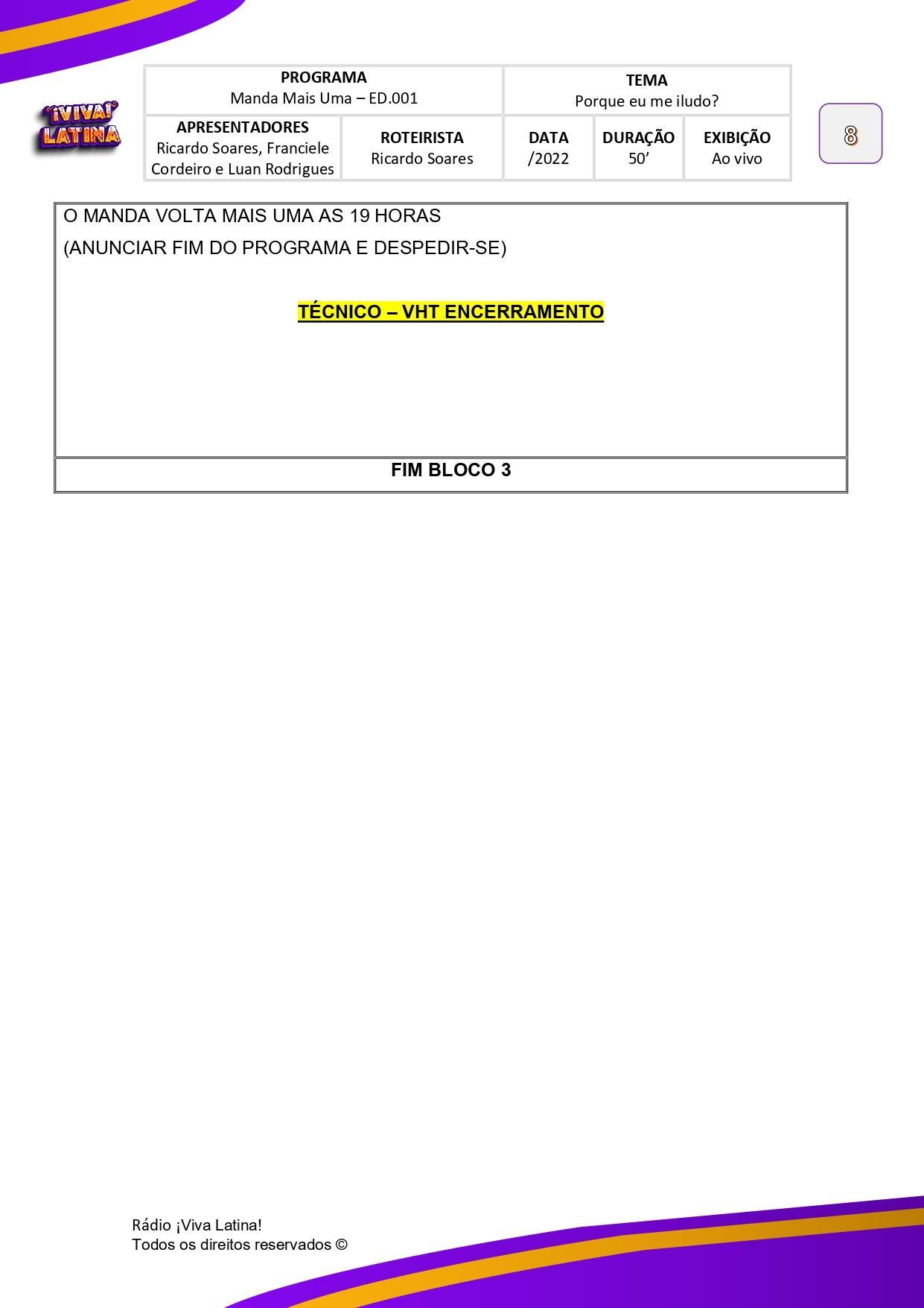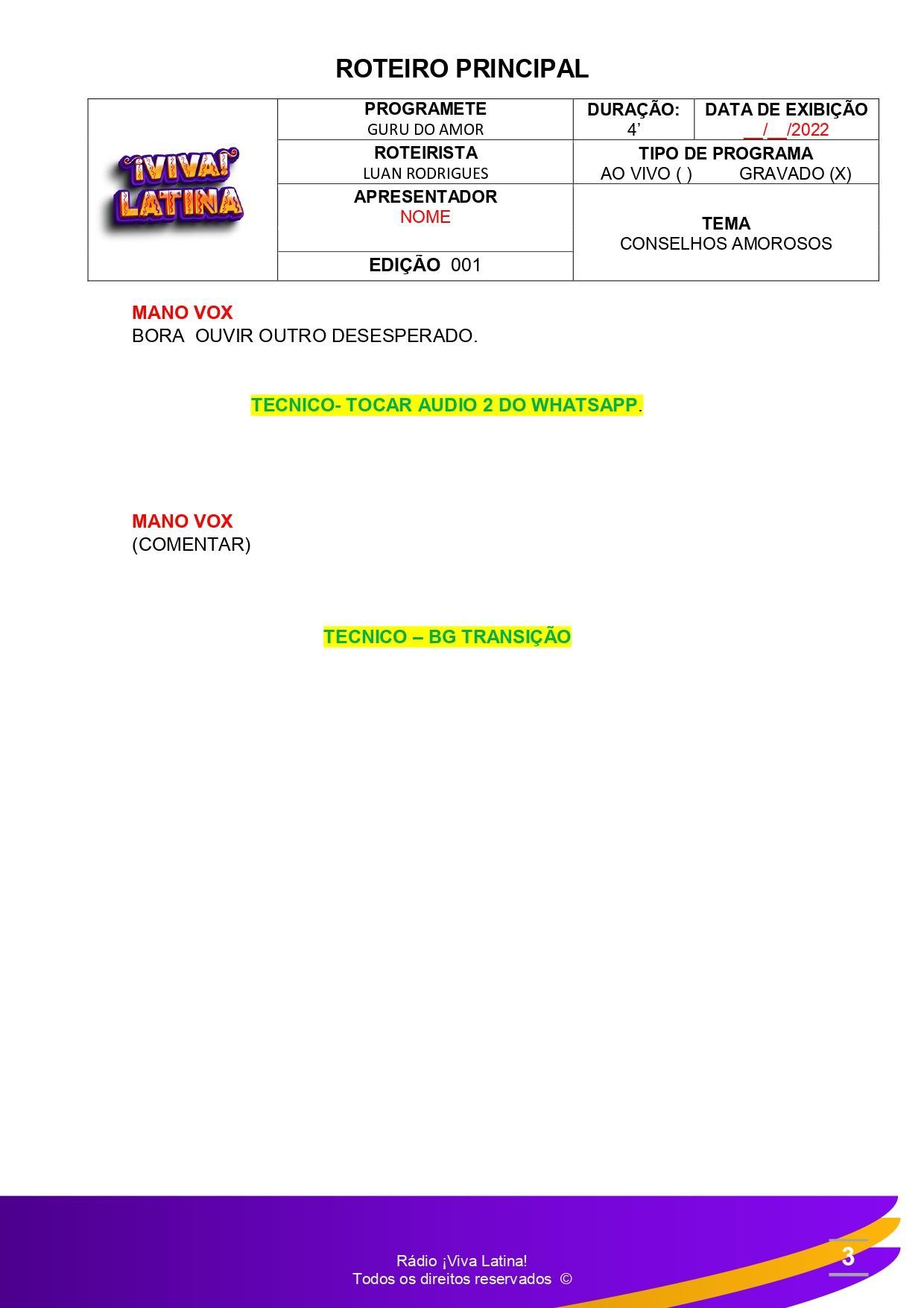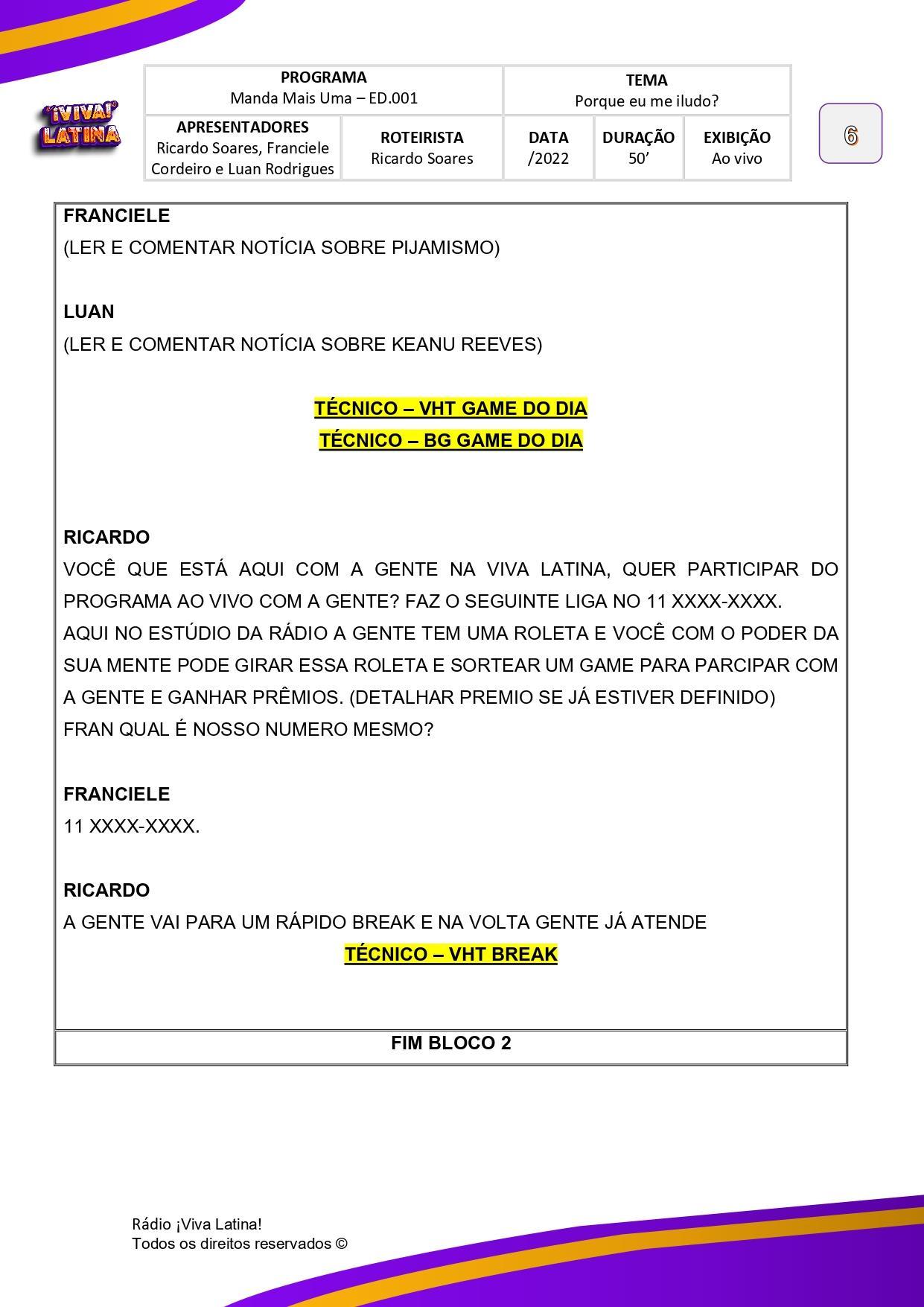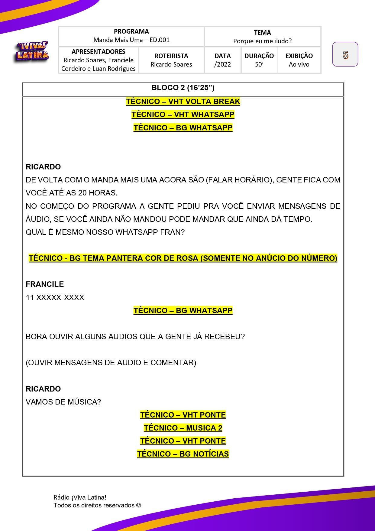 D.A.L.DO NASCIMENTO, J.R. DO NASCIMENTO, L.R. RIBEIRO, L. A. DA SILVA, P. V. R. SILQUEIRA, R. H. S. SILVA, T. G. SILVA, D. R. VOLPI. RÁDIO ¡ VIVA LATINA! Projeto Experimental – (Bacharel em Rádio, TV e Internet) Universidade Cruzeiro do Sul, São Paulo, 2022.