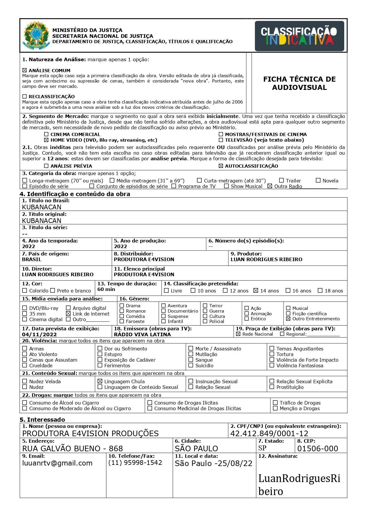 Projeto aprovado em __/__/2022, para a obtenção do título de bacharel em Rádio, TV e Internet.