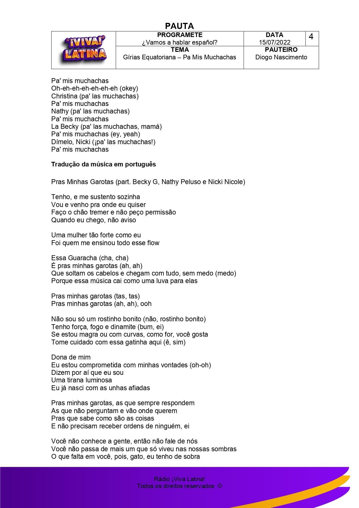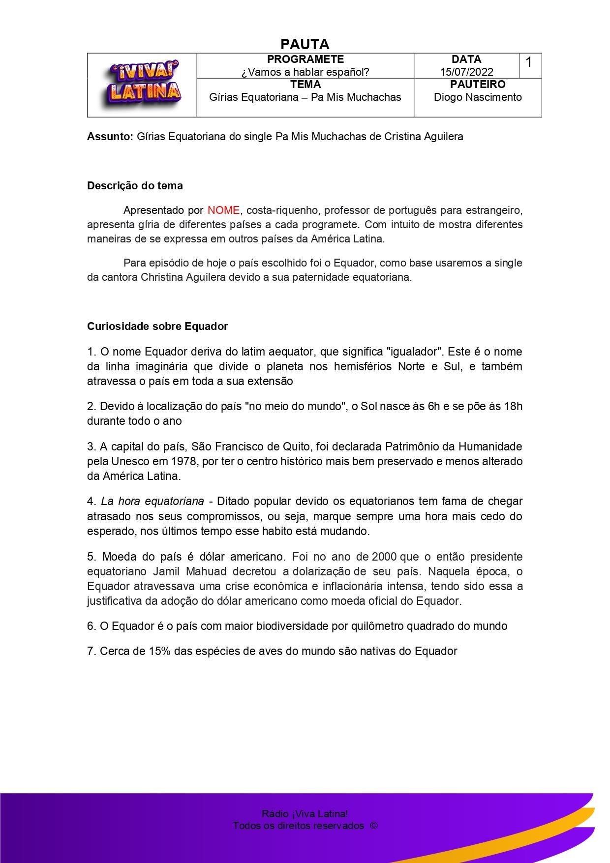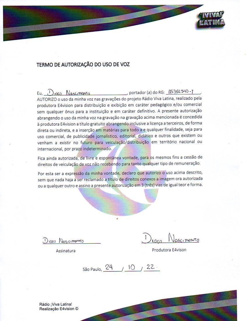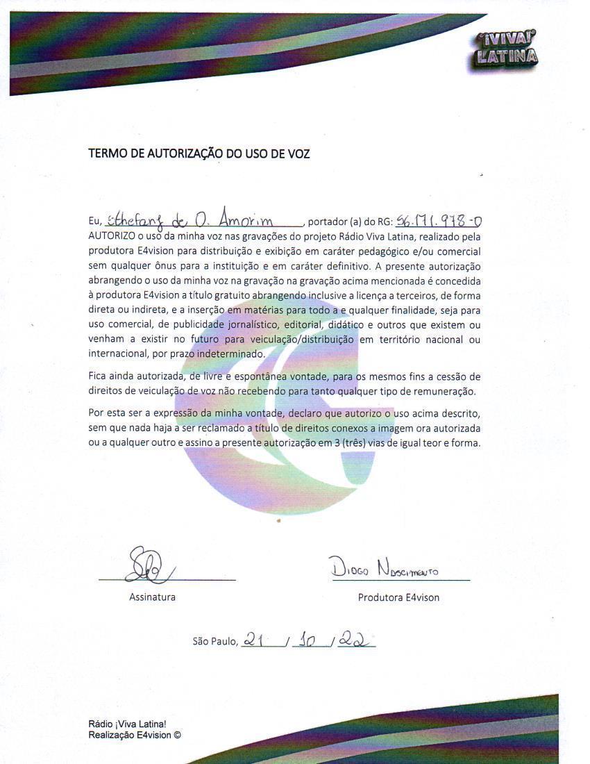D.A.L.DO NASCIMENTO, J.R. DO NASCIMENTO, L.R. RIBEIRO, L. A. DA SILVA, P. V. R. SILQUEIRA, R. H. S. SILVA, T. G. SILVA, D. R. VOLPI. RADIO ¡VIVA LATINA! – Universidade Cruzeiro do Sul, São Paulo, 2022.