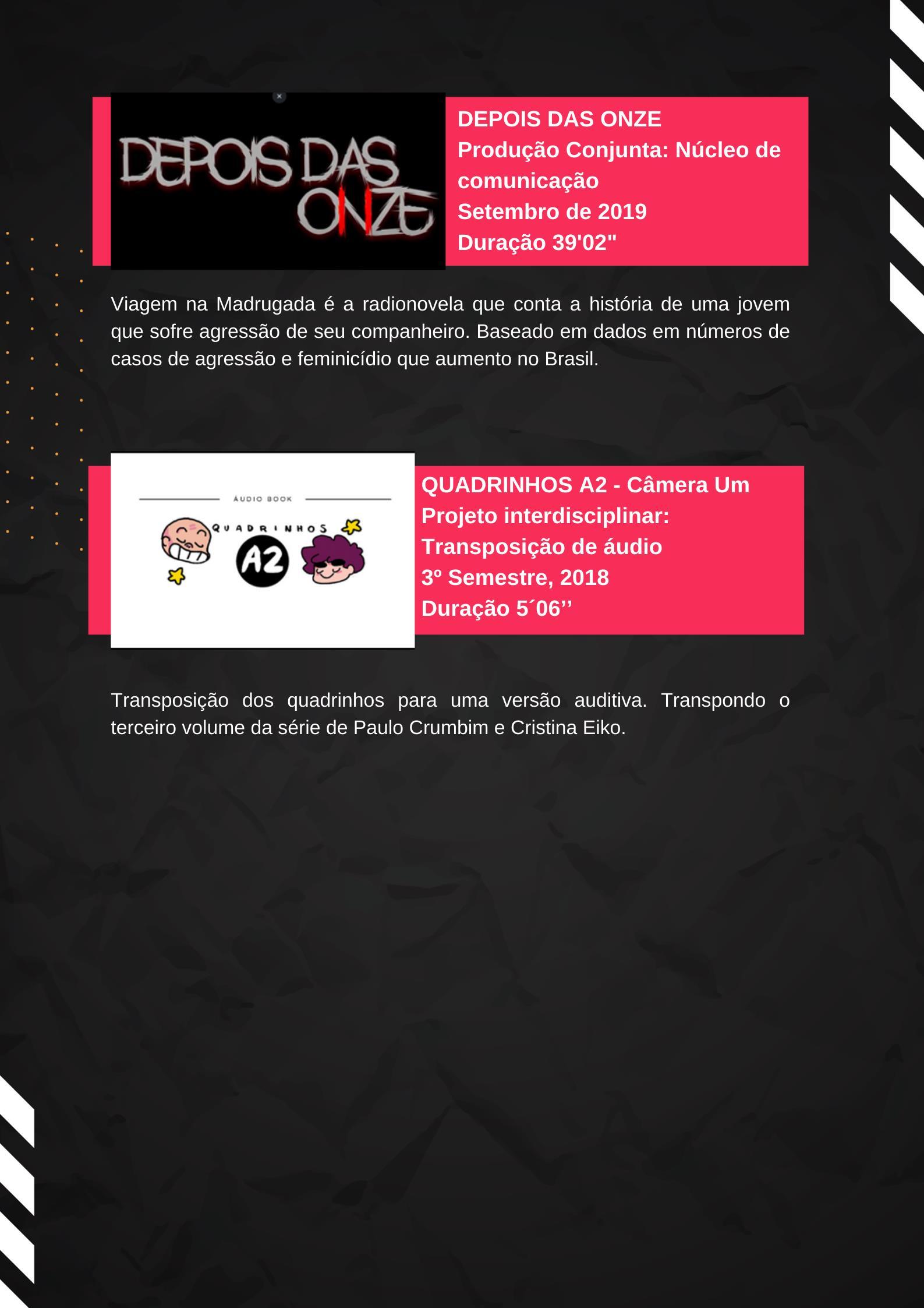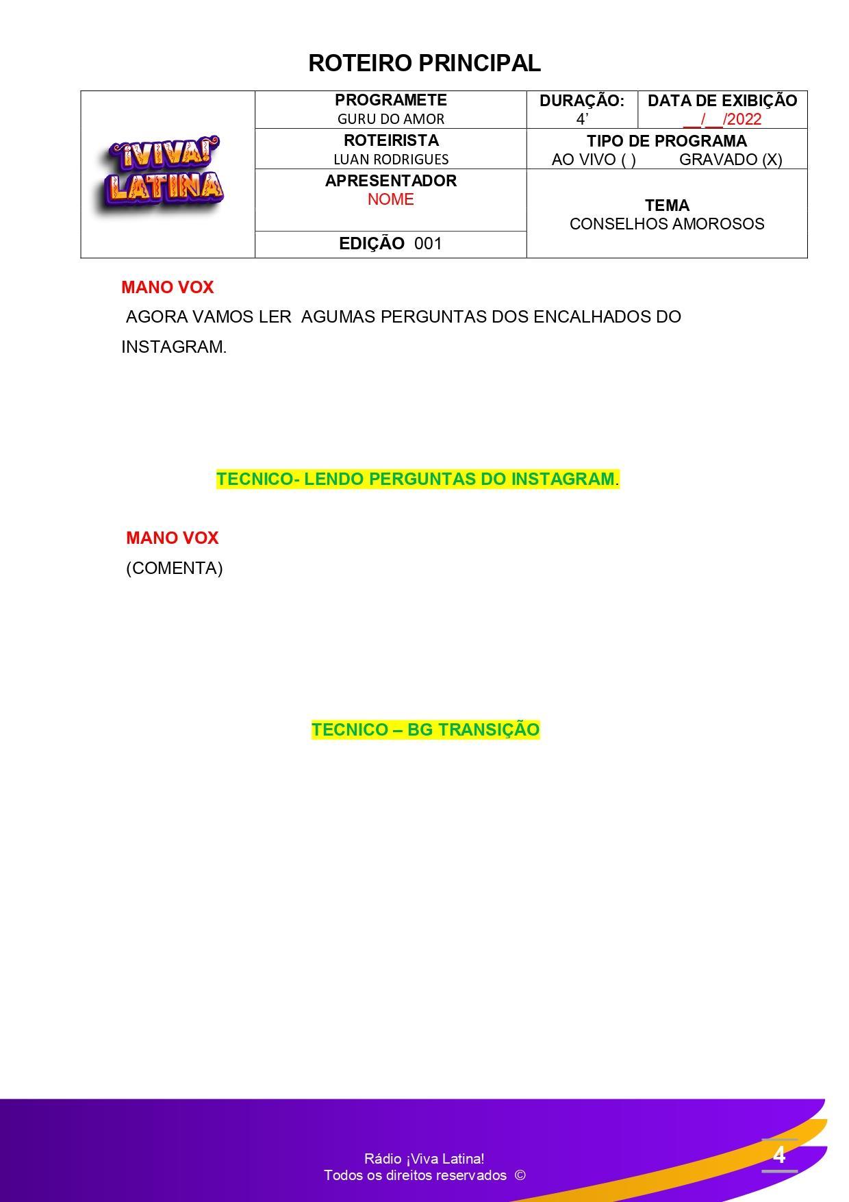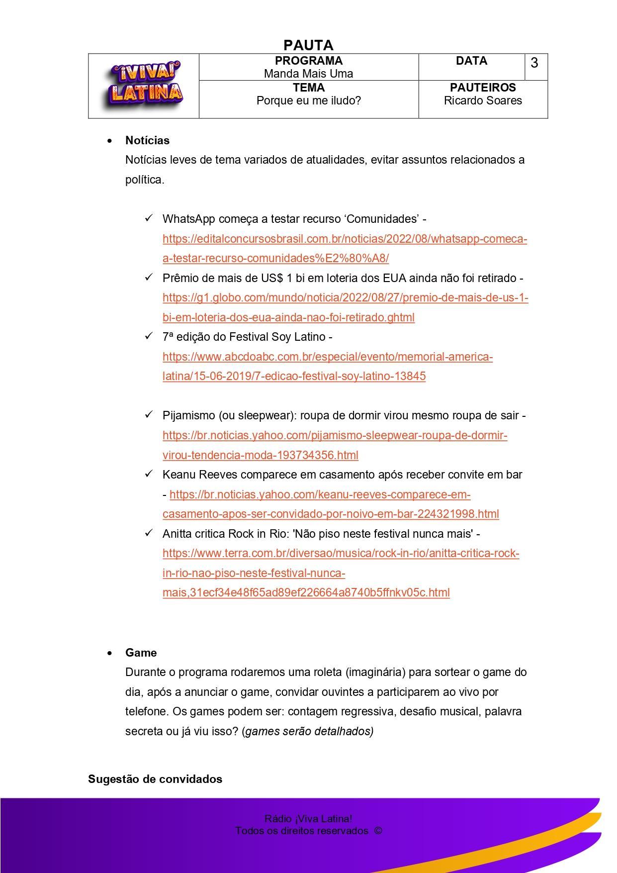 D.A.L.DO NASCIMENTO, J.R. DO NASCIMENTO, L.R. RIBEIRO, L. A. DA SILVA, P. V. R. SILQUEIRA, R. H. S. SILVA, T. G. SILVA, D. R. VOLPI. RADIO ¡VIVA LATINA! – Universidade Cruzeiro do Sul, São Paulo, 2022.