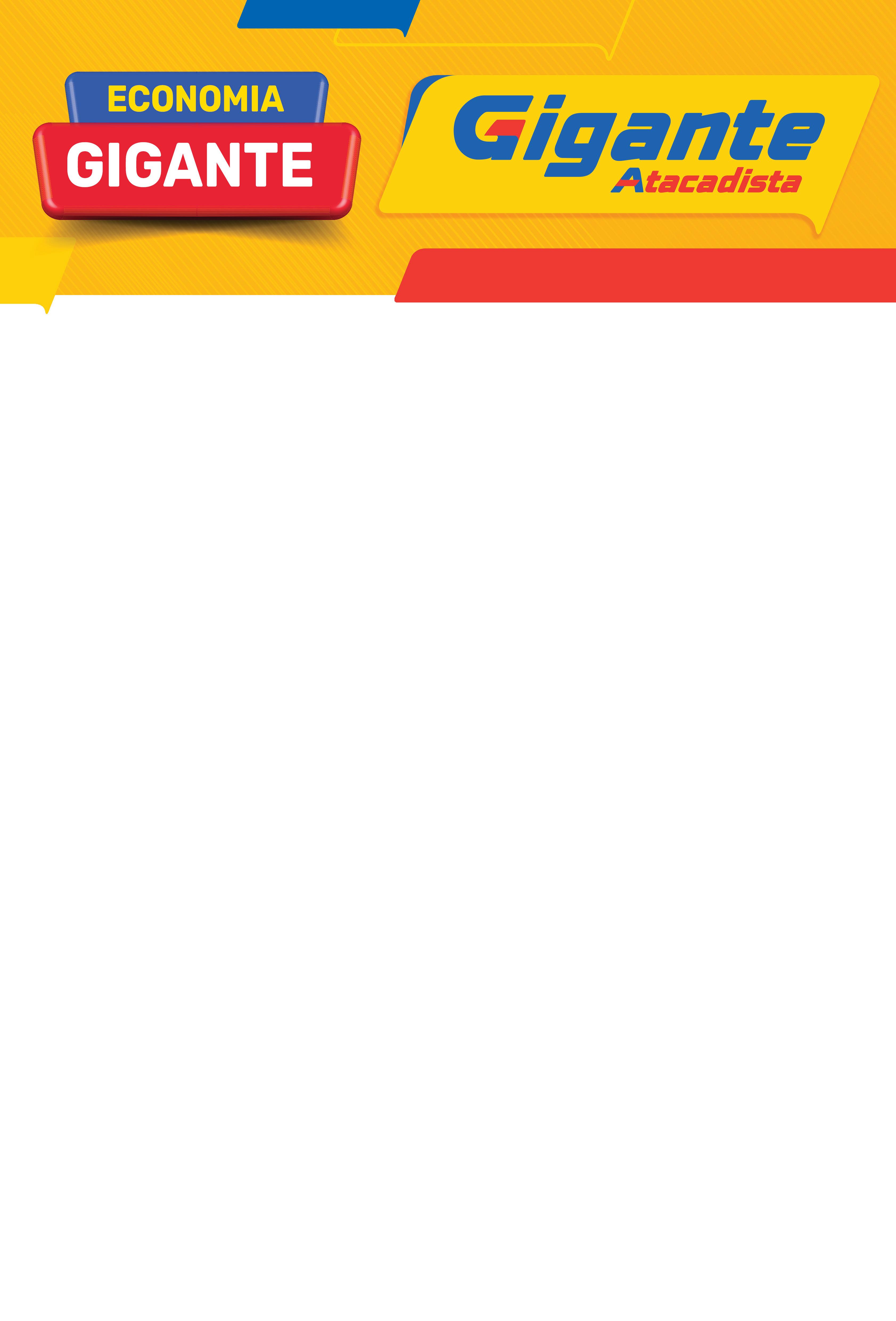 Ofertas válidas de 30/06 a 03/07/2023 para as lojas Gigante Atacadista. Consultar a disponibilidade dos produtos nas lojas. As ofertas dos packs são válidas apenas para as lojas físicas. Limite por cliente de 12kg/ unidades por produto anunciado. Parcelamentos: eletro em até 10x sem juros. Parcela mínima de R$ 40,00; produtos de Bazar (malas; caixas térmicas; jogos de panelas; suqueiras; camping; pneus; e cama, mesa e banho) em até 4x sem juros em todos os cartões, com parcela mínima de R$ 30,00 cada. Imagens meramente ilustrativas. Promoção válida para produtos do mesmo tipo, peso, quantidade, marca, sabor e fragrância. Fica ressalvada eventual retificação das ofertas aqui veiculadas.