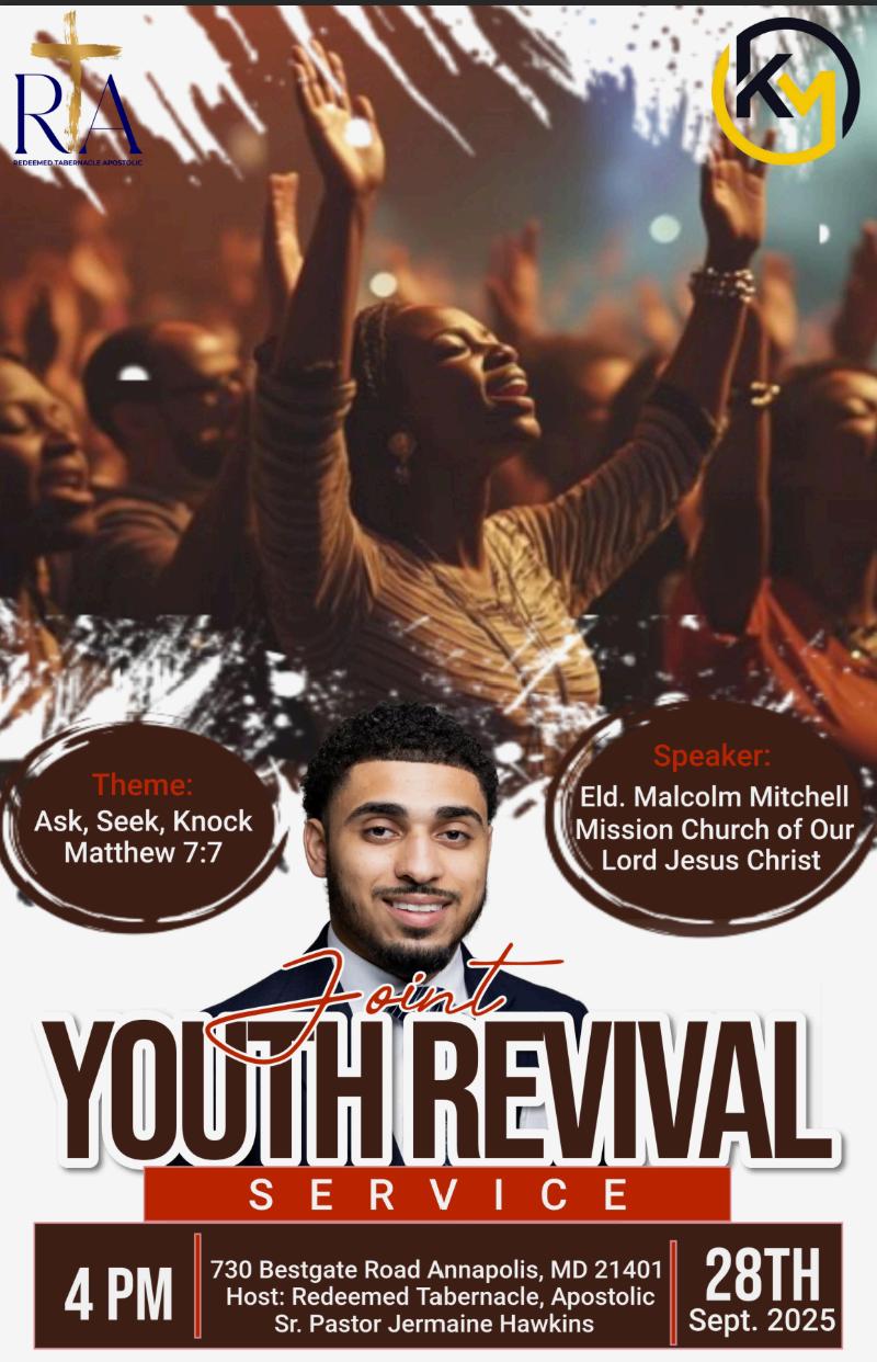 RTA’s 1st Joint Youth Revival – "Ask, Seek, Knock” – Sunday, September 28th, 4:00 p.m. Guest Speaker, Elder Malcolm Mitchell from Mission Church of OOLJC.