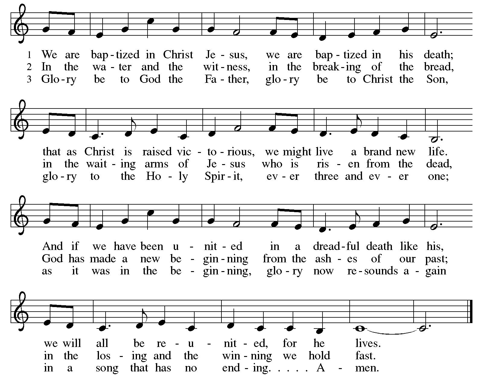 3Do you not know that all of us who have been baptized into Christ Jesus were baptized into his death? 4Therefore we have been buried with him by baptism into death, so that, just as Christ was raised from the dead by the glory of the Father, so we too might walk in newness of life.