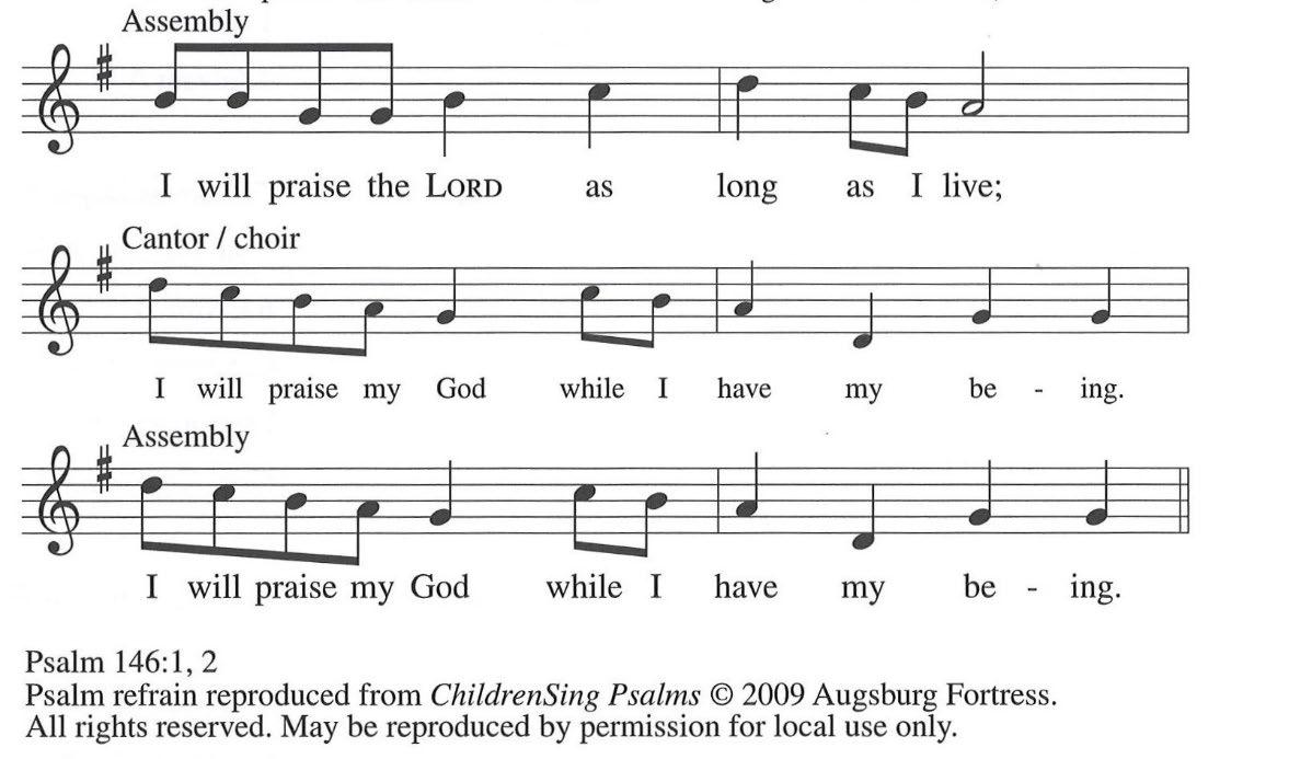 Sung by the choir in Latin Praise the Lord, O my soul; while I live will I praise the Lord: yea, as long as I have any being, I will sing praises unto my God. O put not your trust in princes, nor in any child of man: for there is no help in them. For when the breath of man goeth forth he shall turn again to his earth: and then all his thoughts perish.