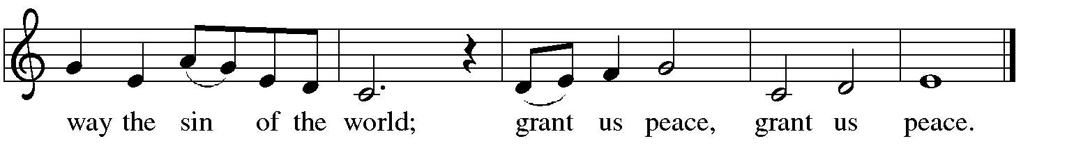 In the mercy of almighty God, Jesus Christ was given to die for us, and for his sake God forgives us all our sins. As a called and ordained minister of the church of Christ, and by his authority, I therefore declare to you the entire forgiveness of all your sins, in the name of the Father, and of the ☩ Son, and of the Holy Spirit. | Amen.