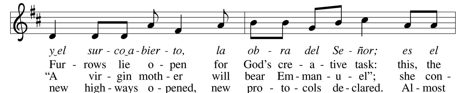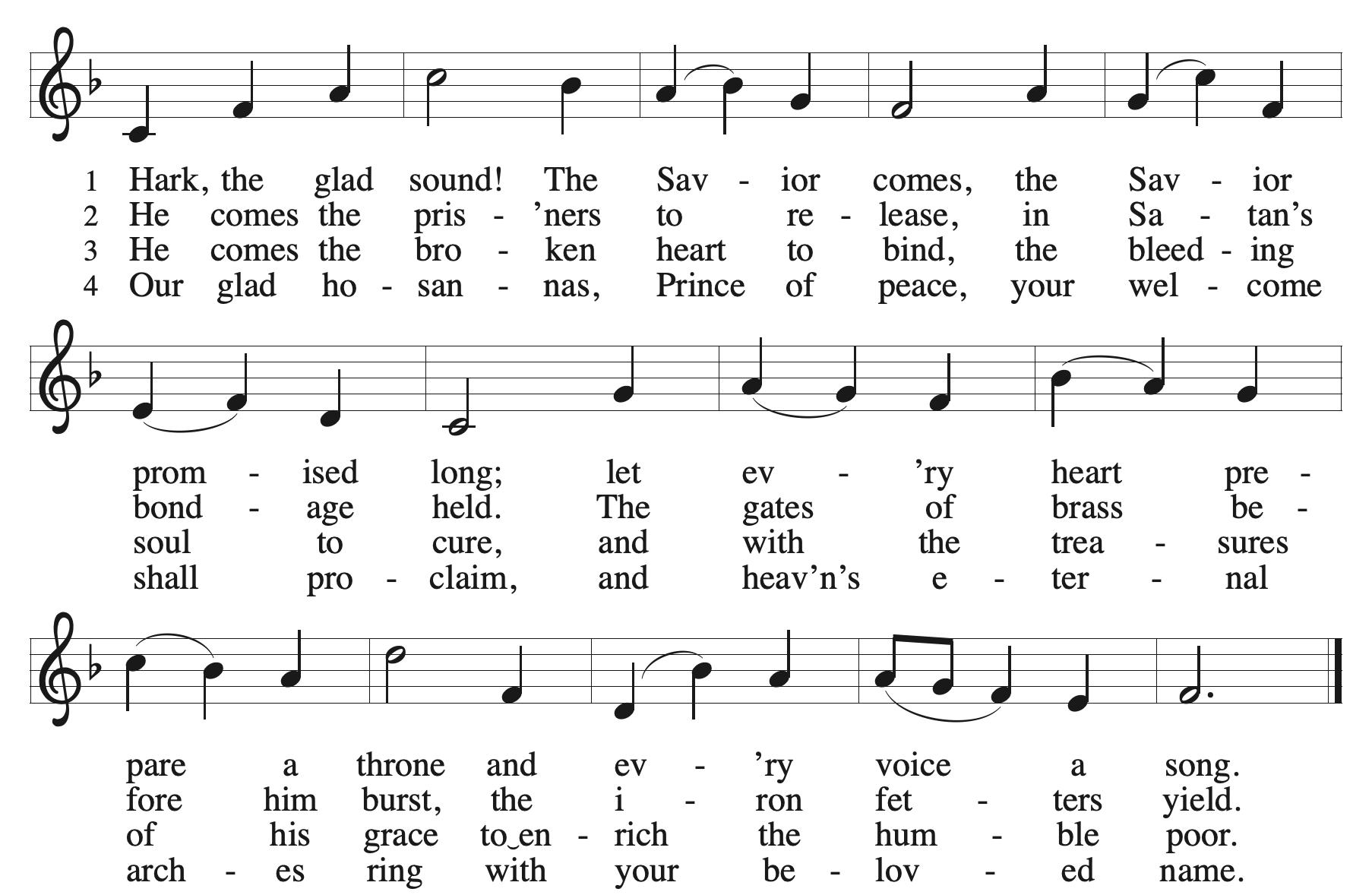 Straight shall be what long was crooked, and the rougher places plain! Let your hearts be true and humble, as befits his holy reign! For the glory of the Lord now on earth is shed abroad, And all flesh shall see the token that God's word is never broken.