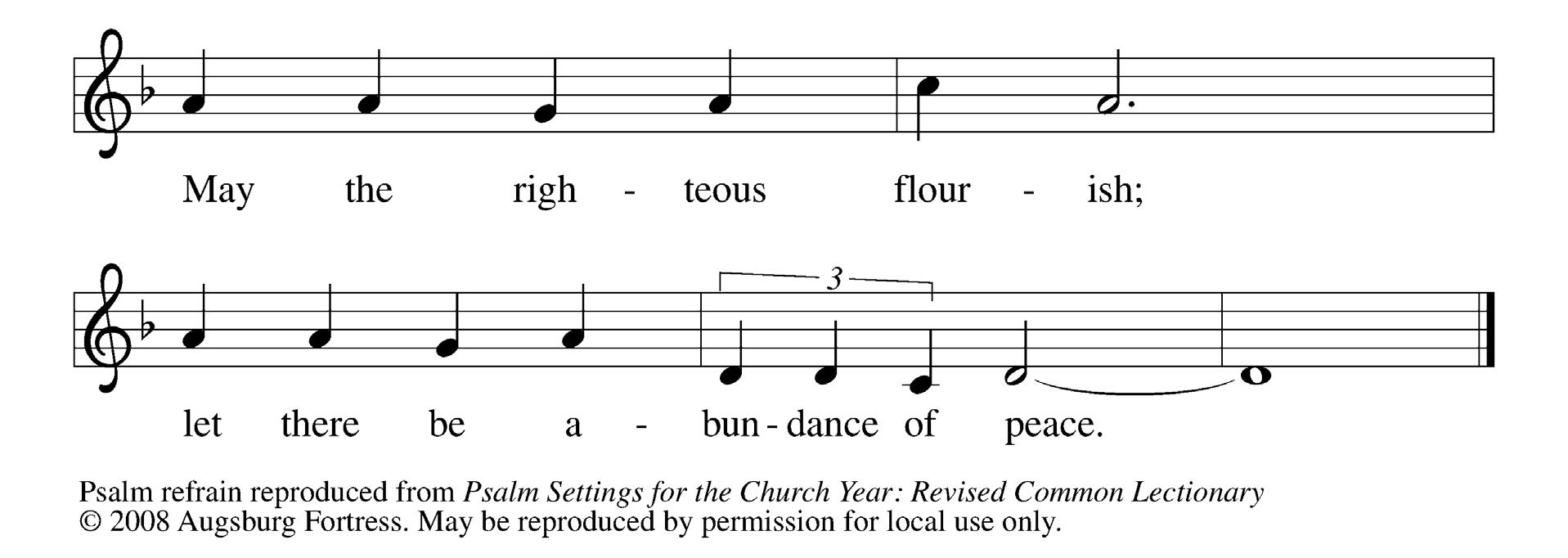 In his time may the righteous flourish; and let there be an abundance of peace till the moon shall | be no more. Blessed are you, Lord God, the God of Israel; you alone do wondrous deeds!