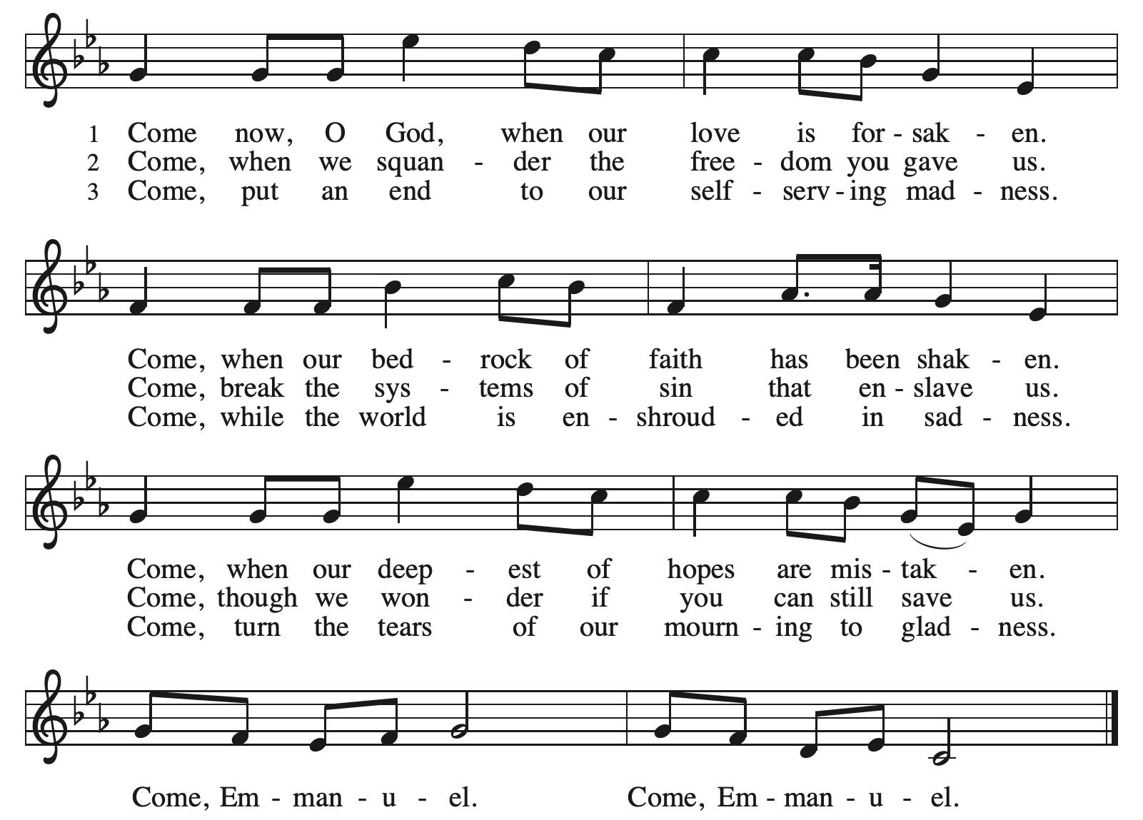 During this time of prayer, you are invited to receive the mercy of Immanuel, God with us. You may come forward to one of the pastors to receive personal prayer and an anointing with oil. You may light a candle in memory of a loved one. You may also hang your ornament prayer on the small Christmas tree. Or you may choose to remain in your seats to reflect on the art on the bulletin cover, or simply rest in the darkness as God meets you here. If you are worshiping online, you can join this Zoom Link for personal prayer. Come, let us receive God’s love, mercy, and peace.