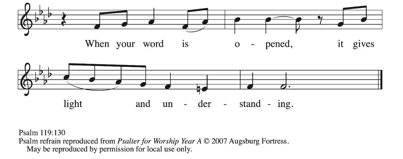 130When your word is opened | it gives light; it gives understanding | to the simple.