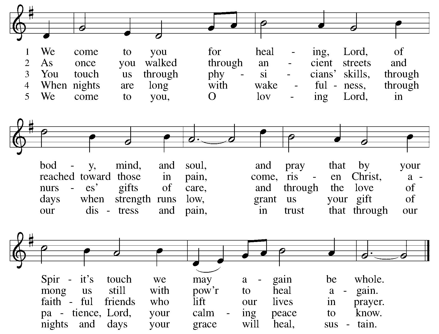 God of compassion, your touch brings healing and your word revives us for life. Hear our prayers for all who are in need, and for doctors, nurses, and health care workers who provide care. Turn wailing into dancing and weeping into joy. We especially pray for the needs and concerns of this congregation including…