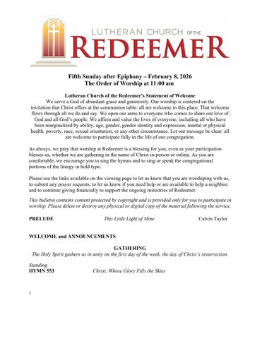Fourth Sunday after Epiphany Pastor Mark H. Larson, preaching