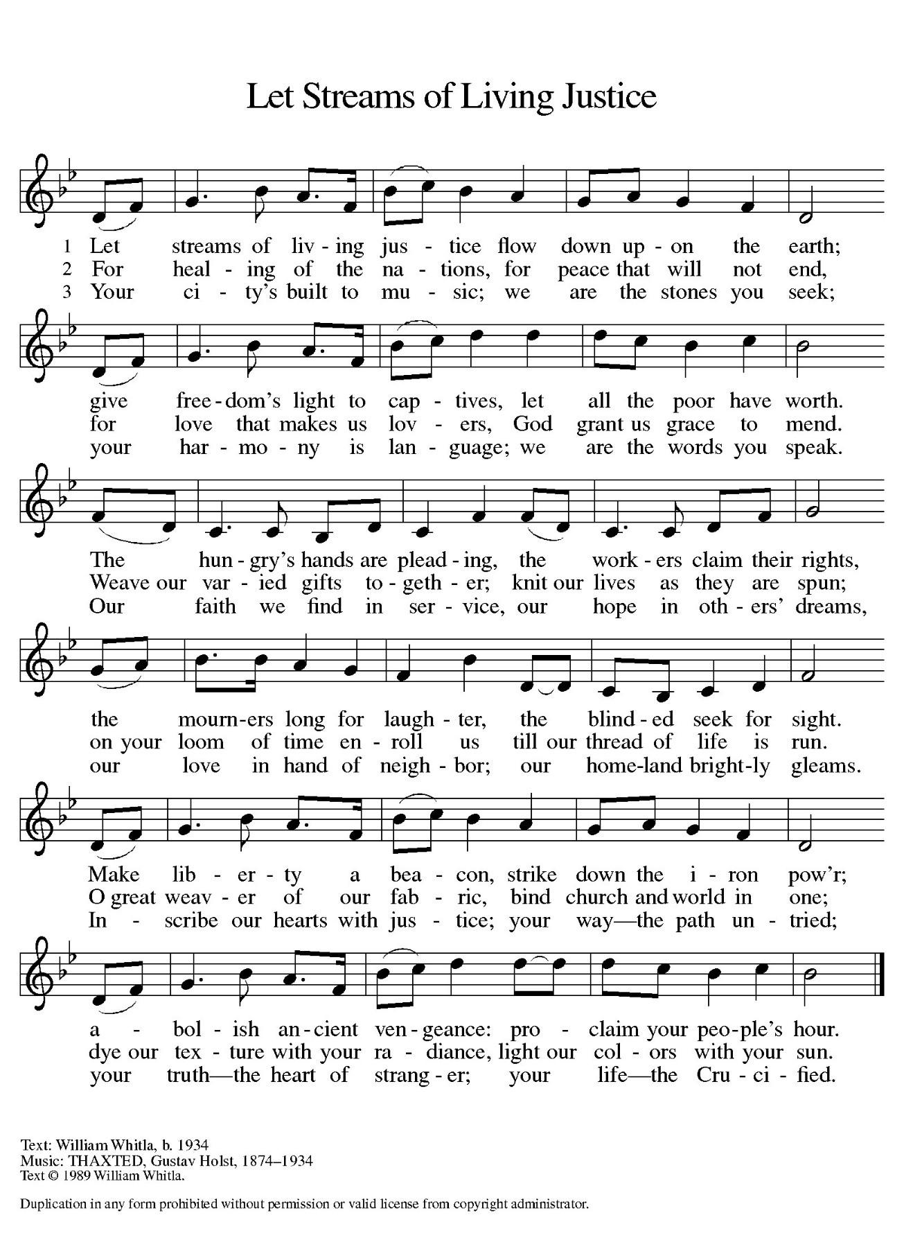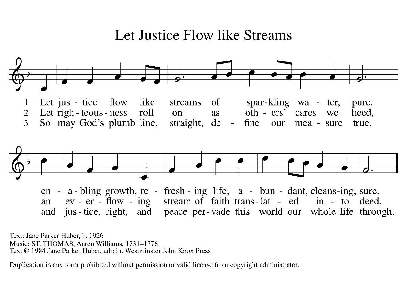 The Holy Spirit gathers us in unity on the first day of the week, the day of Christ’s resurrection. Standing HYMN 710 Let Streams of Living Justice