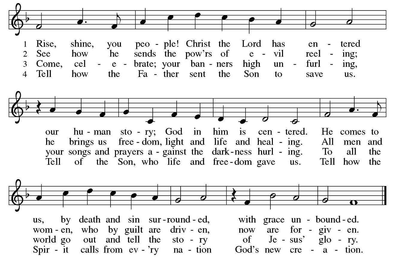 Text © 1957, ren. 1985 The Hymn Society, admin. Hope Publishing Company, Carol Stream, IL 60188. All rights reserved. Used by permission. Music © 1941 Historic Church of the Ascension, Atlantic City, NJ, admin. Augsburg Fortress.