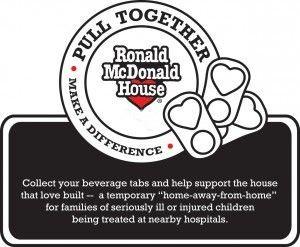 Ronald McDonald House programs, located near top children’s hospitals, are a home away from home that provide comfort, support and resources to families who travel far from home for the medical care their child needs. Parents can stay close to their hospitalized child and benefit from the comforts of home without incurring hotel and food costs. The donated tabs will be recycled and the proceeds will be given to the Ronald McDonald House programs to benefit families everywhere So, let’s keep the tabs coming!