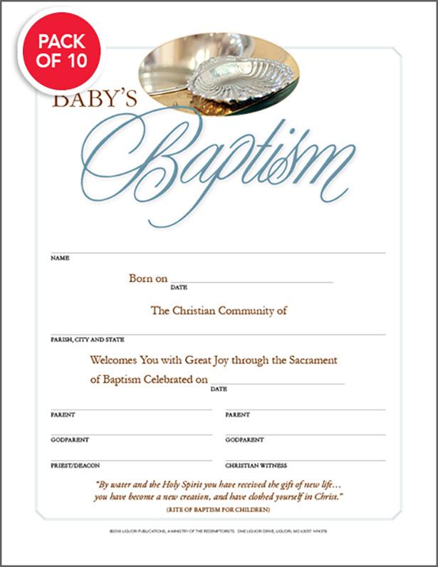 Part of the Liguori Sacramental Preparation Series, this booklet prepares parents for their baby’s special day and reminds them of their own baptismal promises and calling. This booklet includes an overview of sin and salvation, a short history of baptismal practices and traditions, the meaning of the sacrament and its symbols, a step-by-step guide to the rite, and references to Scripture, the Catechism of the Catholic Church, and other Church documents.