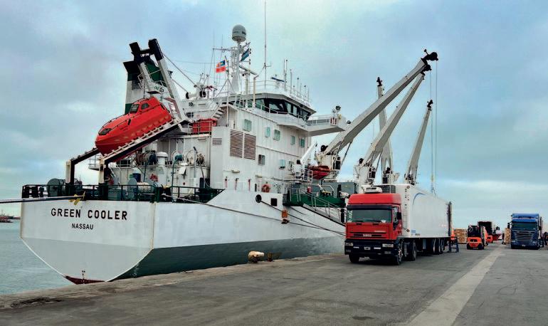 miento de calamar, langostinos y filetes. “Y también rayas a Vietnam, y otros productos para West Africa de mucha demanda en estos meses”, explica Gustavo Losanto, supervisor de ventas y con 30 años de experiencia en comercio exterior. “Realizamos despachos para empresas como Industrias Santa Maria del Mar o Catesur, entre otras, con un monitoreo de cargas personalizado las 24 horas, sobre todo por tratarse de cargas perecederas, como lo es el seafood”. Y también con Berardi, Superbe, Ahumados del Carmen y Ostramar, para lo que es importación de salmón desde Chile, donde receiéntemente inauguraron oficina en la ciudad de Santiago. No es la única, porque el crecimiento tambien se refleja en la precencia de Interborders en el continente, con ofici-