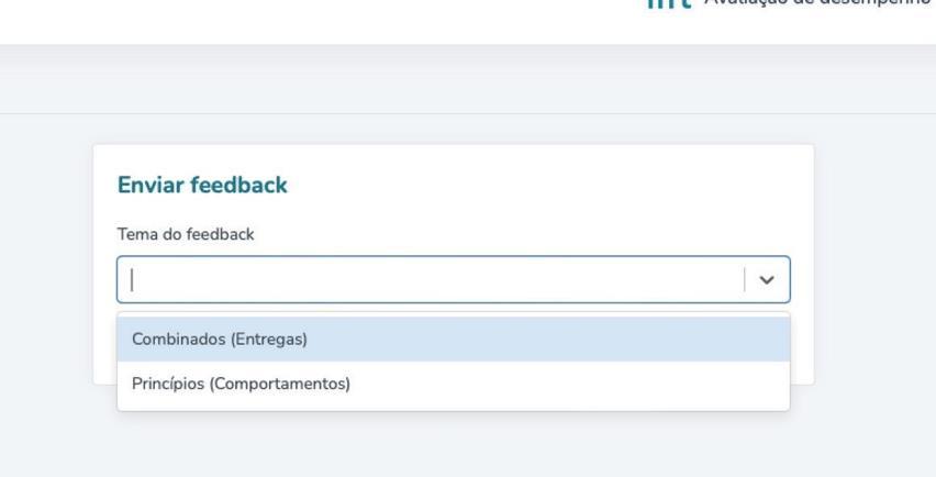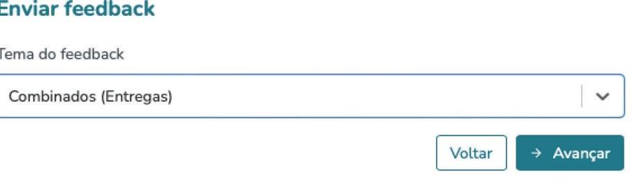 Ao selecionar “Enviar Feedback”, escolha o tema do Feedback.