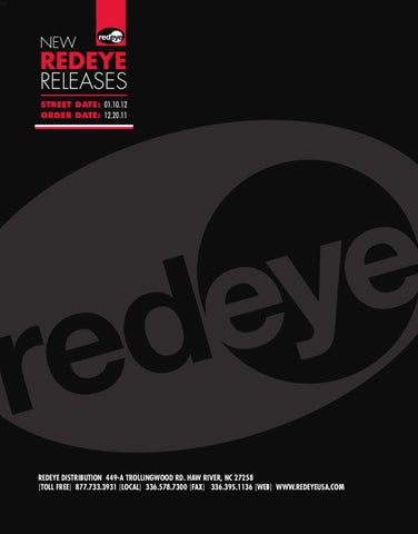 REDEYE DISTRIBUTION 449-A TROLLINGWOOD RD. HAW RIVER, NC 27258 [TOLL FREE] 877.733.3931 [LOCAL] 336.578.7300 [FAX] 336.395.1136 [WEB] WWW.REDEYEUSA.COM