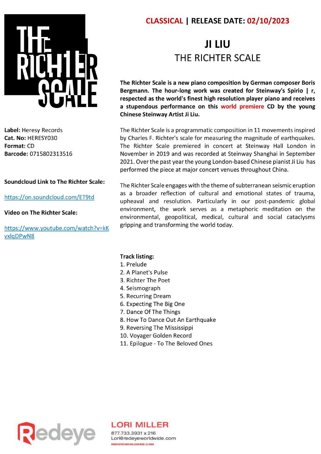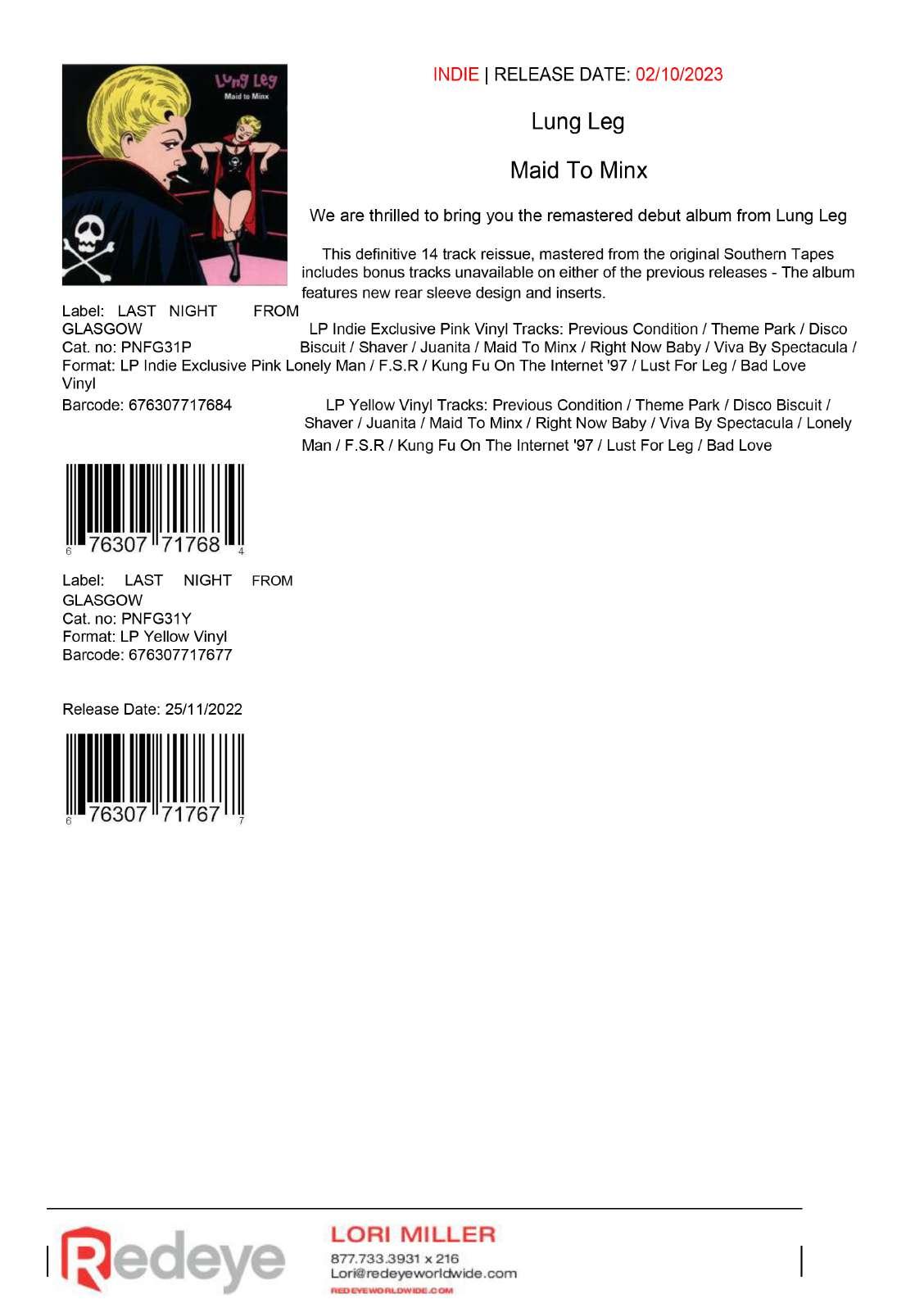 Lori Miller lori@redeyeworldwide.com § ext. 216