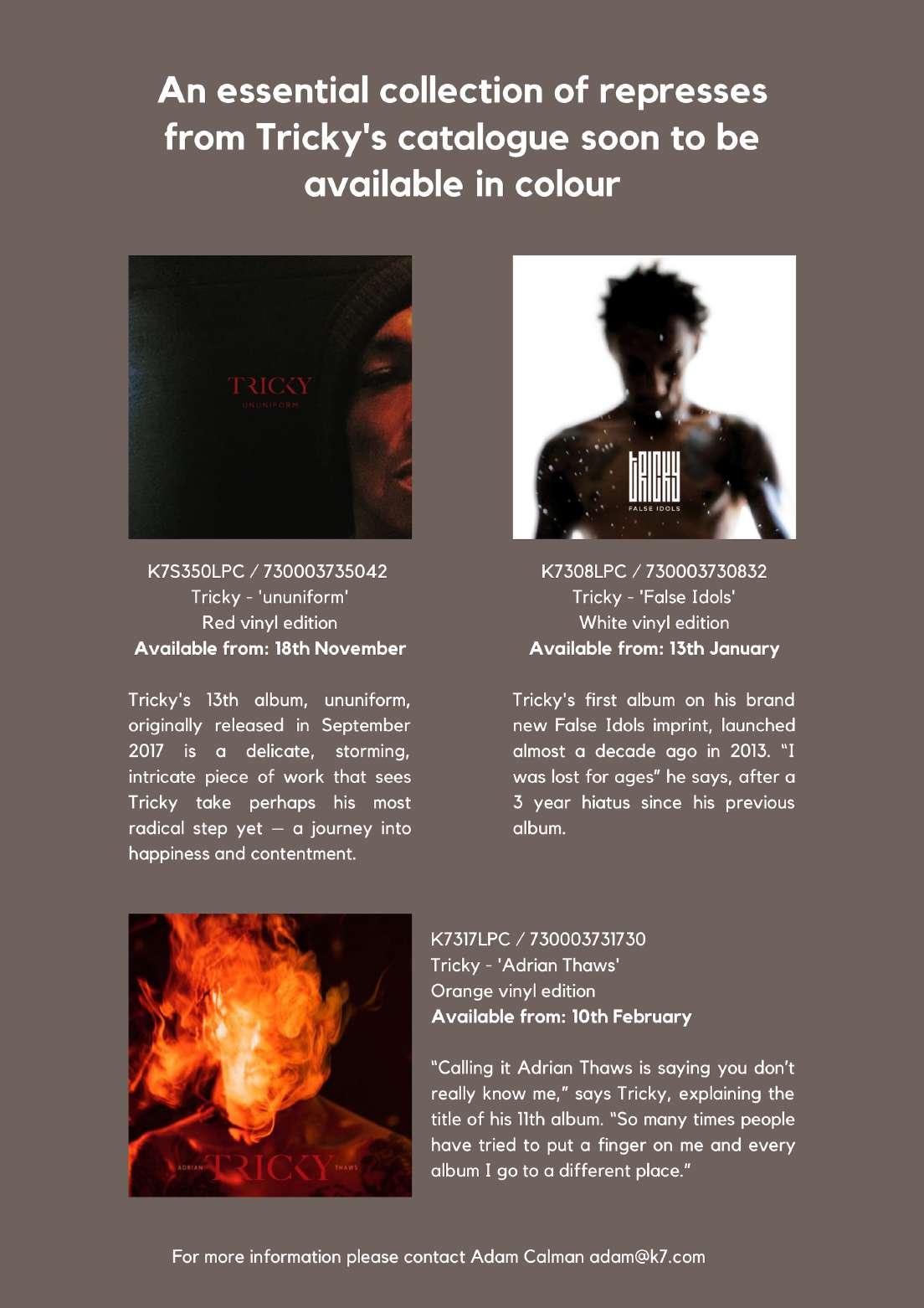 Vinyl $21.30 $31.99 623339918923 CD-OUTS-9189 Barber, Jill Homemaker CD $9.30 $13.99 623339918916 LP-OUTS-9189C Barber, Jill Homemaker (“SPILLED MILK” VINYL) Vinyl $15.30 $22.99 623339919210 LP-OUTS-9189IE Barber, Jill Homemaker (INDIE EXCLUSIVE, “BLUEBERRY PIE” VINYL) Vinyl $15.30 $22.99 607618226213 LP-BBQ-2262 Tubeway Army Tubeway Army Vinyl $18.00 $26.99 607618226206 LP-BBQ-2262C Tubeway Army Tubeway Army (MARBLED BLUE VINYL) Vinyl $18.00 $26.99 730003735042 LP-K7-350C Tricky ununiform (RED VINYL) Vinyl $24.65 $36.99 730003731730 LP-K7-317C Tricky Adrian Thaws (ORANGE VINYL)