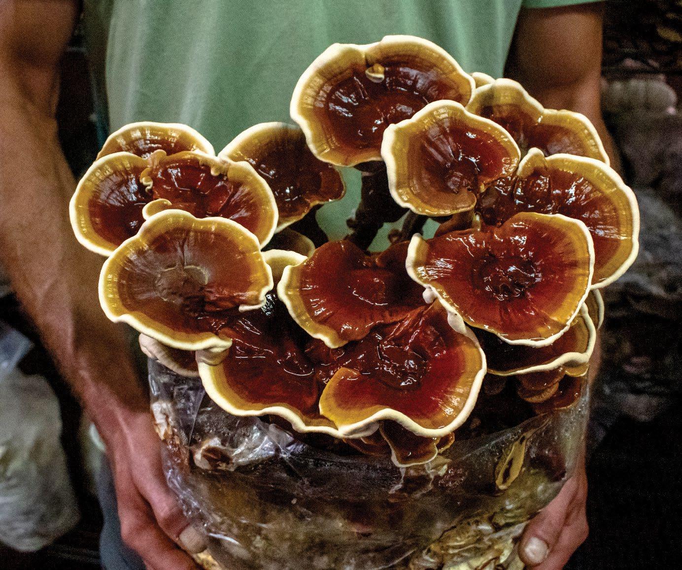 It’s a balmy day in late August, but the Mycopolitan Mushrooms grow room feels more like a forest floor in midOctober. A thick mist sprays from the ceiling, casting a glowy haze across shelves filled with blooming oyster mushrooms, lion’s mane and a handful of other exotic species.