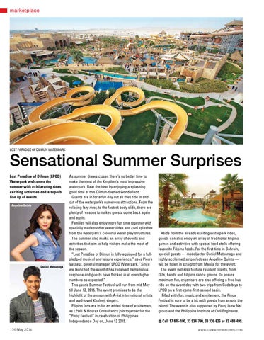 Sensational Summer Surprises Lost Paradise of Dilmun (LPOD) Waterpark welcomes the summer with exhilarating rides, exciting activities and a superb line up of events. Angeline Quinto