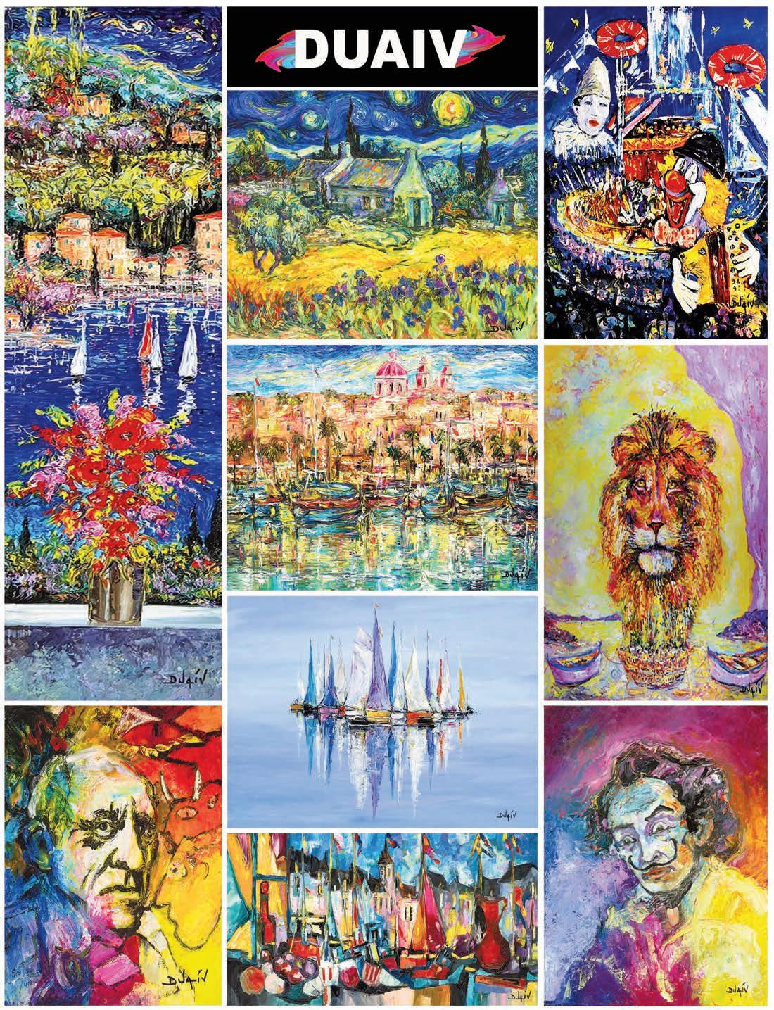 -At the 50th anniversary of the Cannes Film Festival in 1997, Duaiv designed and painted the façade of two buses, using the landscape of Cannes and popular film stars as inspiration. These paintings were later exhibited at a museum in Mougins, France.