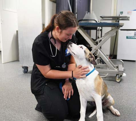 Veterinary nurse Mekayla Johnston from Cleveland Veterinary Clinic gives Patch a check-up and a cuddle or two.