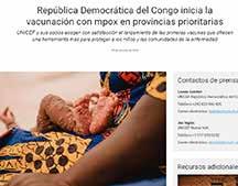 Democratic Republic of Congo starts mpox vaccination in priority provinces El Ministerio de Salud Pública y Prevención, con el apoyo de UNICEF, la Organización Mundial de la Salud (OMS), Africa CDC y Gavi, la Alianza para las Vacunas, comenzó hoy a vacunar contra el mpox a grupos vulnerables en provincias de alta prioridad en la República Democrática del Congo (RDC). En septiembre, llegaron a Kinshasa 265.000 dosis de la vacuna MVA-BN mpox, donadas por la Unión Europea, el Gobierno de los Estados Unidos y Gavi con