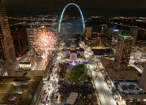 On December 31, Winterfest rings in the New Year with its ‘Neon Nights,’ a family-friendly event featuring concerts, DJs, visits from princesses and superheroes, fire dancers, and a spectacular fireworks show with views of the Gateway Arch.