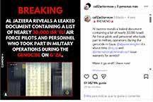 Al-Jazeera revela un documento filtrado que contiene una lista de casi 30.000 pilotos y personal de la Fuerza Aérea israelí que participaron en operaciones militares durante el genocidio en Gaza Al Jazeera Reveals Leaked Document Containing a List of Nearly 30,000 Israeli Air Force Pilots and Personnel Who Participated in Military Operations