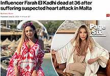 Influencer Farah El Kadhi dies at the age of 36 after suffering a suspected heart attack in Malta