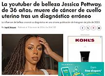 La youtuber de belleza Jessica Pettway, de 36 años, muere de cáncer de cuello uterino tras un diagnóstico erróneo Beauty YouTuber Jessica Pettway, 36, dies of cervical cancer after misdiagnosis Jessica Pettway , una influencer de belleza con más de 16 millones de visitas en YouTube, falleció. Tenía 36 años. Su muerte se produce casi nueve meses después de que revelara que le habían diagnosticado cáncer de cuello uterino en etapa 3 en una sincera publicación en Instagram . Su hermana Reyni anunció la noticia en Instagram el viernes, según E! Online. Jessica Pettway, a beauty influencer with more than 16 million views on YouTube, has passed away. He was 36 years old. Her death comes nearly nine months after she revealed she had Septiembre 15, 2024, 2024 / www redlatinastl com / 47