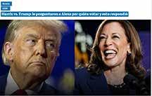 Harris vs. Trump: le preguntaron a Alexa por quién votar y esto respondió Harris vs. Trump: Alexa was asked who to vote for and this is what she answered Cuando se le preguntó a Alexa por qué votar por Donald Trump, la asistente virtual de Amazon respondió consistentemente con un mensaje de neutralidad política. En cada ocasión, declinó proporcionar información o recomendaciones que apoyaran a un partido político o a un candidato específico. Las respuestas incluían frases como: “No puedo proporcionar respuestas que respalden a un partido político o su líder” y “No tengo la capacidad de proporcionar información sobre las políticas del gobierno de EE. UU”. Sin embargo, por esta particularidad, se armó revuelo.