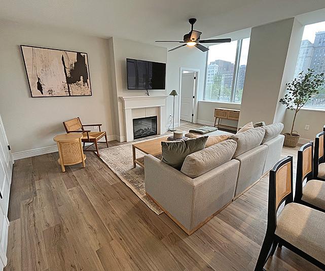 CLEVELAND (continued from page 9) K&D offers luxury downtown living, sophisticated suburban living, senior/affordable housing, commercial/retail leasing - as well as employment opportinities at all of our communities! Visit our website for info about all of our locations throughout Northeast Ohio at... www.KandD.com NOW RENTING! FIRST MOVE-INS BEGIN OCTOBER 1, 2022! LIVING OPTIONS TO SUIT EVERY LIFESTYLE Reflective Sophistication. Uncompromising Convenience. 55 Public Square | Cleveland, OH 44113 | 216.621.5005 | www.ResidencesAt55.com 202 BRAND NEW, LUXURY 1 & 2 BEDROOM SUITES AND 2 & 3 BEDROOM PENTHOUSES! Fahrenheit Restaurant Attached to the Building with Rooftop Dining! Located Minutes from the Warehouse District, E. 4th Street, Professional Sporting Venues, JACK Cleveland Casina, Playhouse Square, Public Square, Dining, Entertainment... everything that Downtown has to offer! 24/7 Fitness Center, Community Lounge, Convenience Market with Cafe, Smart Apartment App Feature, Package Room, Bike Storage, Pet Washing Facility, Attached Garage Parking, Pet Friendly! Left: The 200 Public Square office building in downtown Cleveland is in the middle of a major renovation that will include updates to its lobby area. Right: The view from 200 Public Square in downtown Cleveland.