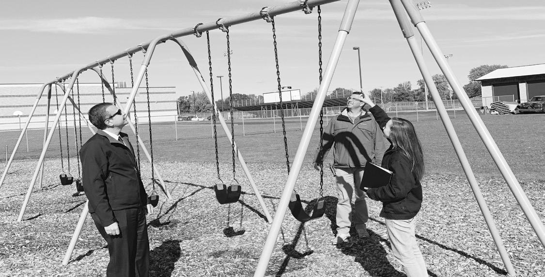 Junior Josie Bartol discusses plans for the installation of handi cap swings with Superintendent Dr. Carl Cartwright and Director of Building and Grounds, Josh Youngbauer ‘99. “I hope that the project helps to include more students outside with their peers,” Bartol said.