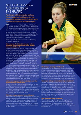 MELISSA TAPPER – A CHANGING OF THE GUARD Paralympic table tennis star Melissa Tapper hopes her qualification for the able-bodied Commonwealth Games team launches a new era in Australian sport.