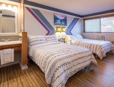 Forty-five minutes from Jasper, you’ll find the newly opened Jasper East Hostel. While outside of town proper, the hostel has a trailhead right outside your door and a brewery only a twominute walk away. It offers single-occupancy rooms, two fully stocked kitchens and a sanctuary space with infrared therapy lights. The upper floor features red-light therapy throughout, including all upper-floor bedrooms, making for a calming and comfortable environment.