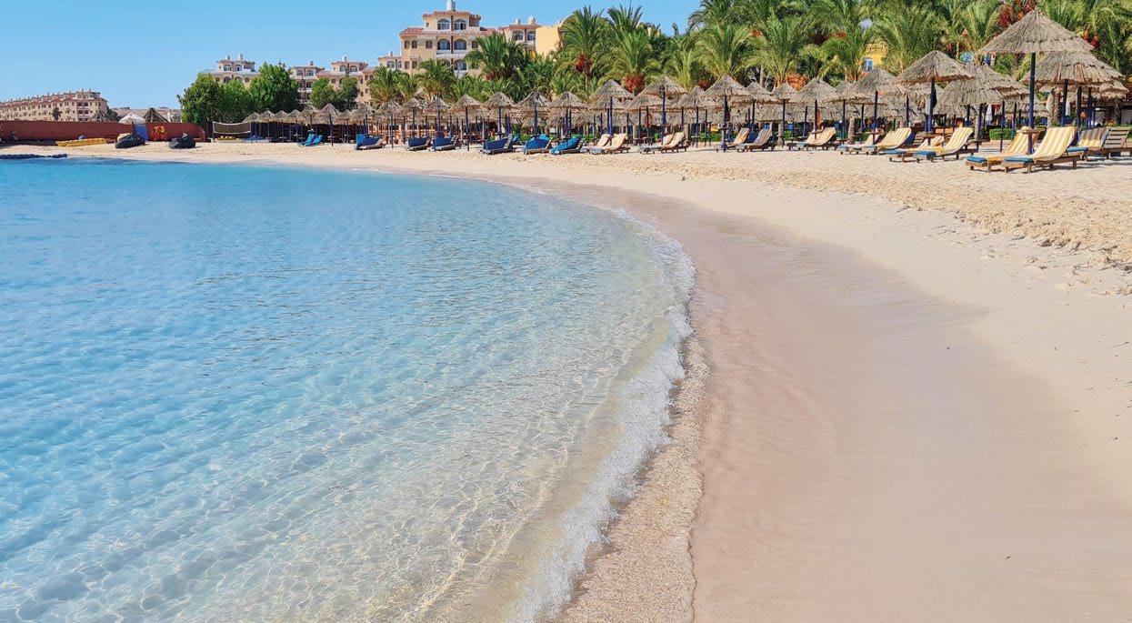 • pláž od hotela oddeľuje len atraktívna pobrežná pešia promenáda lemovaná palmami, tiahnuca sa pozdĺž celého letoviska