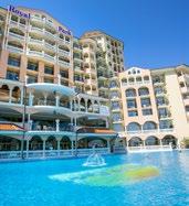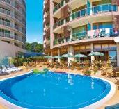 Vybavenie » 4-poschodová hotelová budova v mediteránskom štýle • priestranná vstupná hala s recepciou, posedením a s 24-hodinovým servisom • výťahy • reštaurácia • bar • bazén • ležadlá a slnečníky pri bazéne zdarma • plážové
