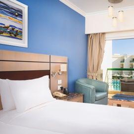 Ubytovanie » 2-lôžkové izby s možnosťou jednej prístelky • klimatizácia • TV • trezor • wifi • vlastné hygienické zariadenie (kúpeľňa so sprchou alebo vaňou, WC, sušič na vlasy) • balkón alebo terasa • moderné izby s výhľadom na more a bazén (za poplatok)