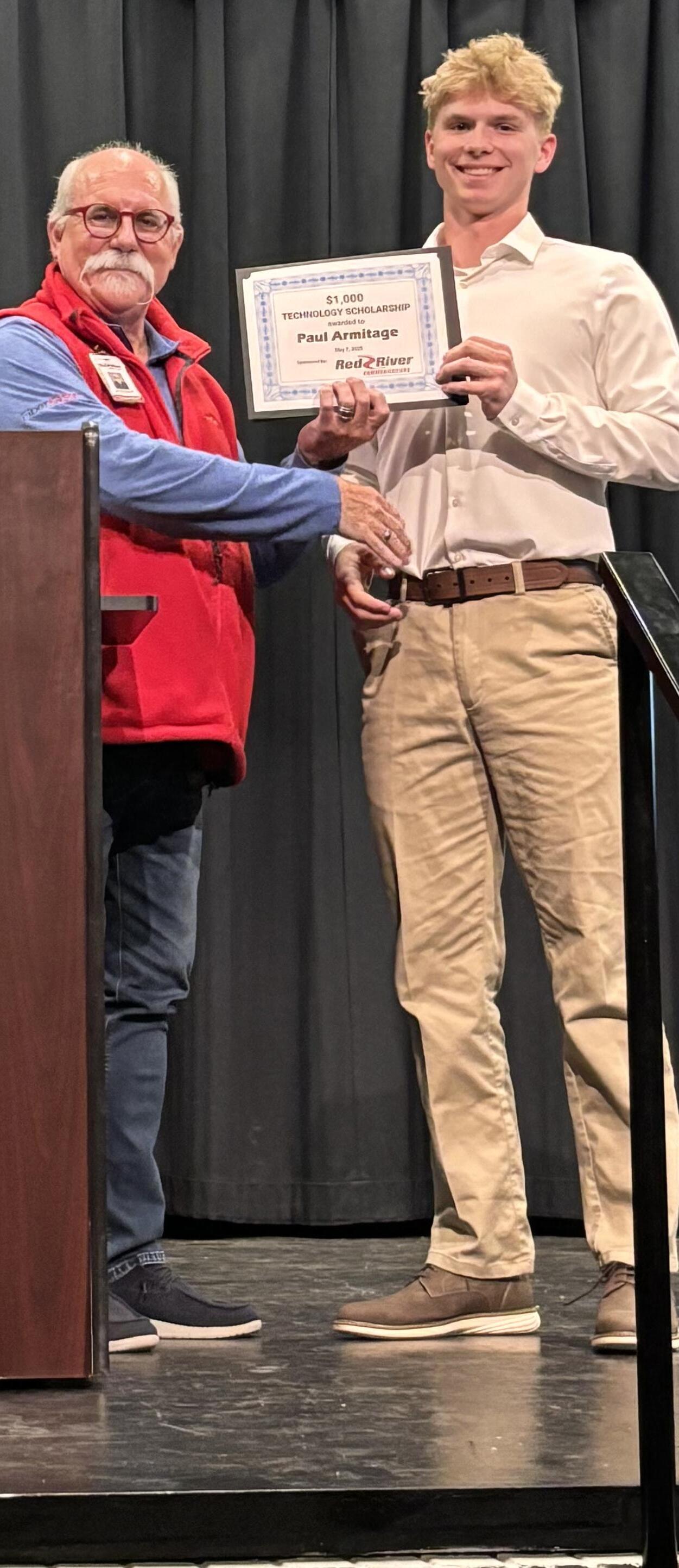 Red River’s residential salesperson Wayne Steiner (left) presents Paul Armitage (right) with the 2025 Red River Communications Technology Scholarship. Paul is a 2025 graduate of Breckenridge High School.