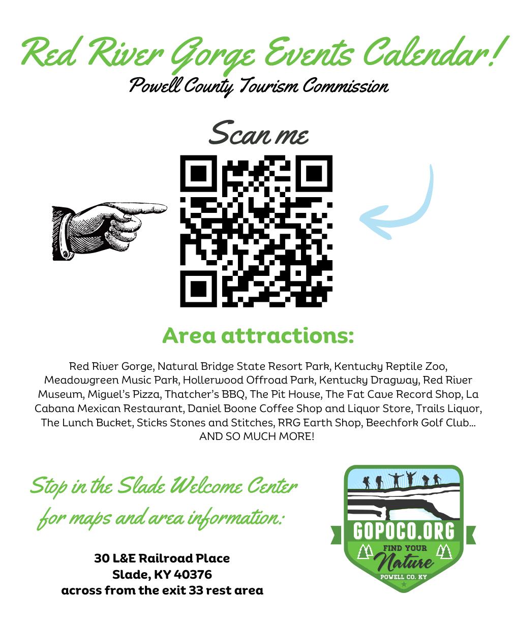 • Red River Gorge Earth Shop Local Art gallery & Gift Shop 606.668.5228 Nat Bridge Rd. Slade