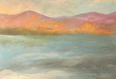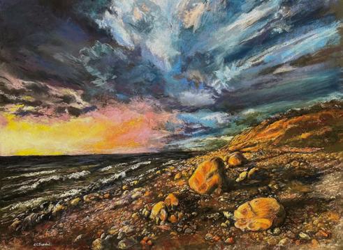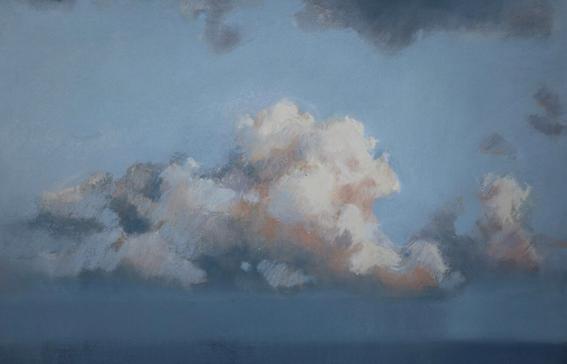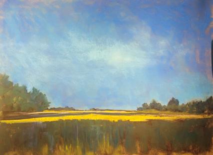 An energetic and confident landscape. The color is bold, the marks assured, and the sense of light immediate. Movement carries through the marsh grasses into the sky, holding the viewer’s attention and capturing the fleeting beauty of the moment.