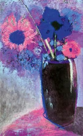 A still life with striking presence. The composition is strong, and the color is bold yet controlled. Shapes and strokes are handled with a painter’s confidence, transforming ordinary objects into something monumental. Both abstract and representational, the work stands on the strength of its design and the power of its mark-making.