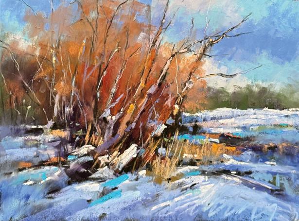 Tanya Trinkaus Glass Winter Wash in Rookery’s Watershed | 24 x 17.9