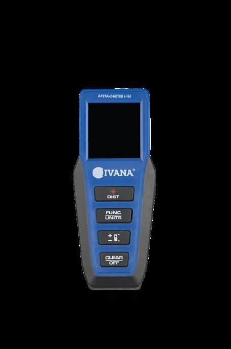 Laser afstandsmeter met een bereik tot 100 meter. Voor het meten van lengte, oppervlakten, volumes en schuine zijden.