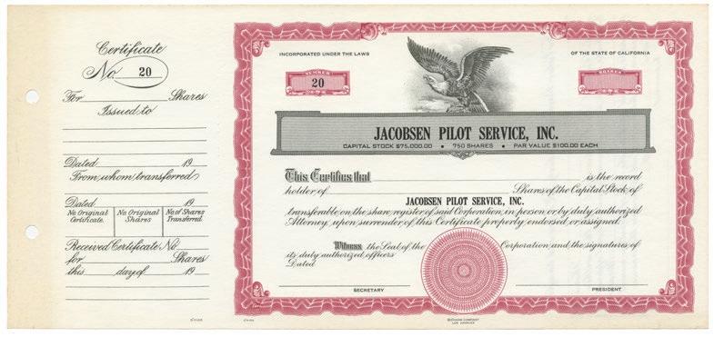 W.H. Wickersham and Company, handling oil tankers for Standard Oil, Atlantic Richfield (ARCO), and others. Soon after, in early 1924, he officially founded J.A. Jacobsen & Company, the first iteration of what is now Jacobsen Pilot Service.