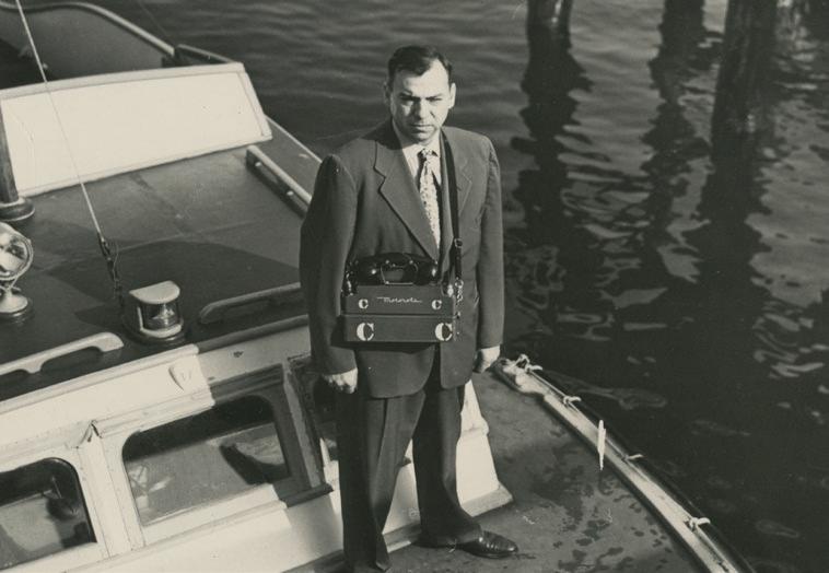 Captain J.A. Jacobsen boarding the training ship Golden Bear in 1950.