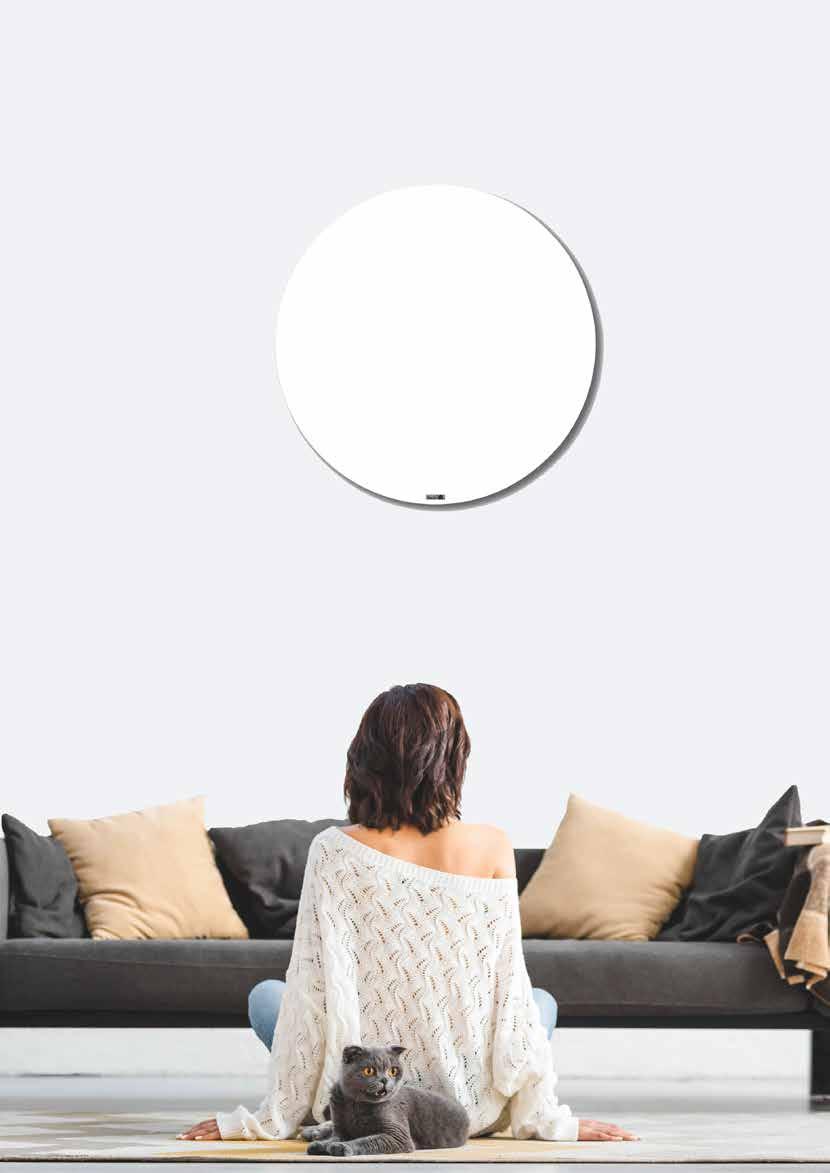 Die runde Deckenheizung ist ideal für hohe Wohnräume, Treppenhäuser, Eingangshallen und Lobbys. Mit ihrem zeitlosen Design setzt dieses Modell stilvolle Akzente und sorgt für eine gleichmäßige Wärmeverteilung in jedem Raum.